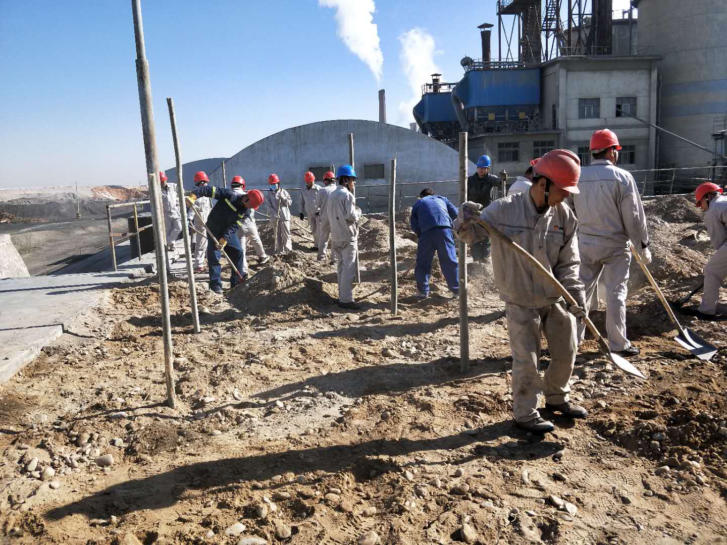 4月10日和11日,資源再生公司組織所有日勤人員栽種樹木。先后在東大路西側,4#電石爐西側,職工回民餐廳門口及成品裝置東邊等等地方栽種樹木上千棵。大家齊心協力,扶樹的、填土的,每個人都在努力的加快進度,頭上冒出了汗珠,渾身酸痛,可大家仍然堅持著,短短兩天時間就將所有計劃的樹木全部栽種完畢。