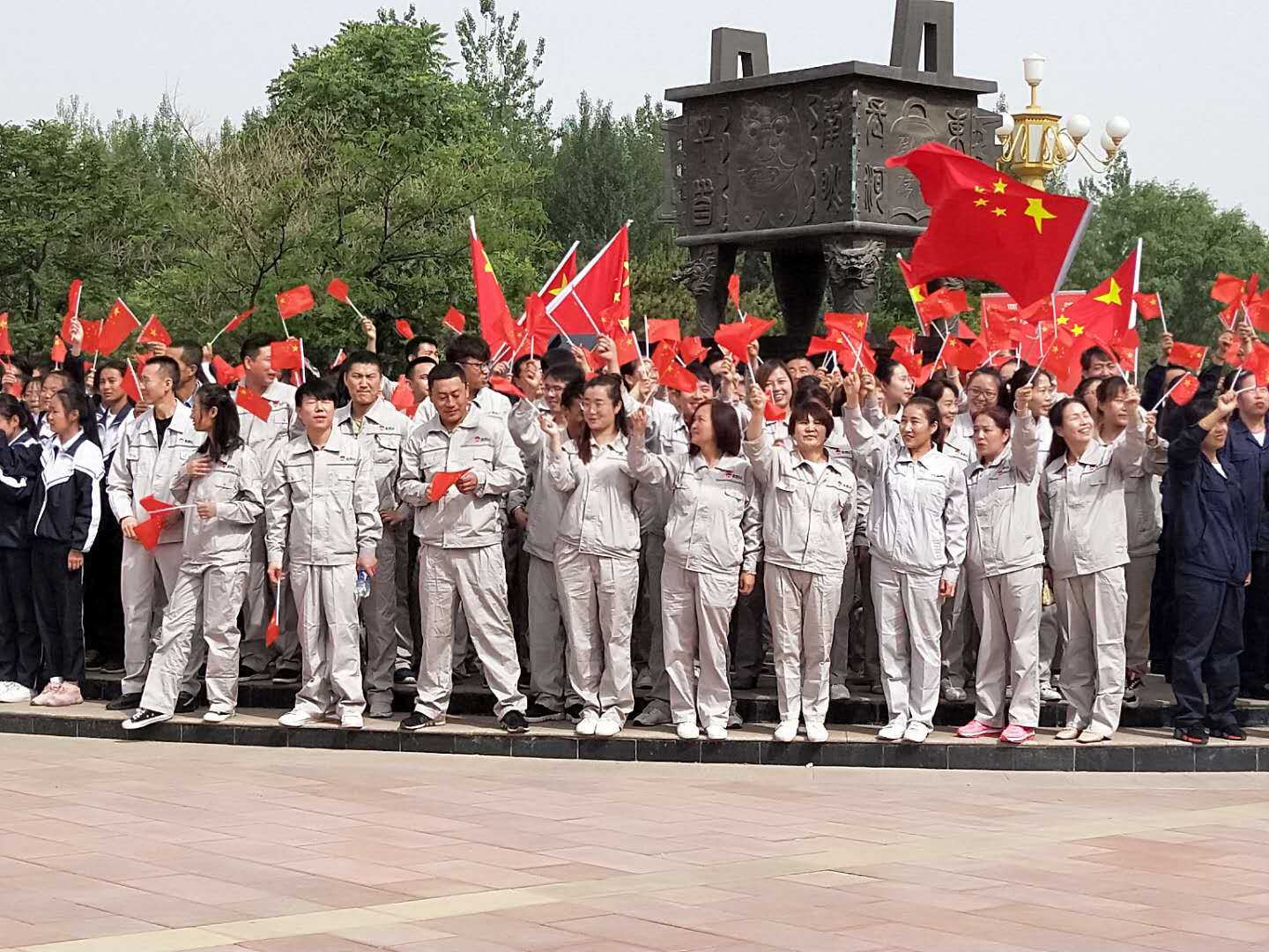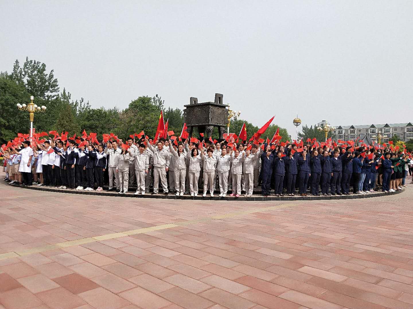 5月25日早上7時,寧夏金昱元集團青銅峽片區管理中心組織120人的合唱隊,參加青銅峽市組織的“我為祖國點贊”快閃拍攝活動”,全體人員統一穿著“金昱元”新版全身工作服,精神飽滿、激情唱響《我愛我的祖國》、《我愛你,中國》等歌曲,現場紅旗飄飄,歌聲嘹亮,路過的群眾也不由自主,自發的加入到其中。。。