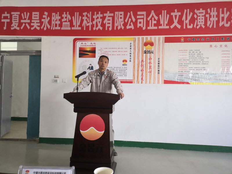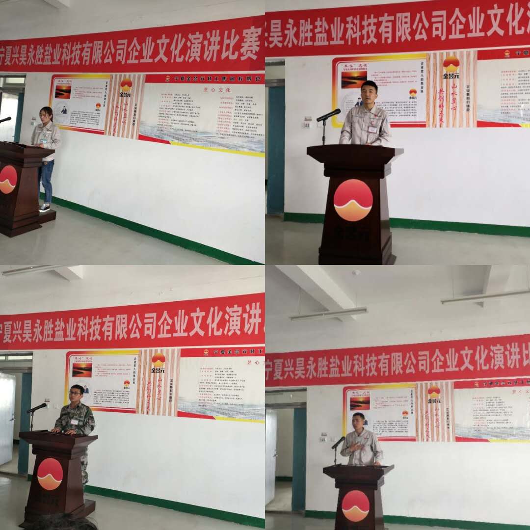 2019年5月30日,寧夏興昊永勝鹽業(yè)科技有限公司舉辦“提升職業(yè)化素養(yǎng)”主題演講比賽。鹽業(yè)公司總經(jīng)理尚繼榮、副經(jīng)理莊濤、綜合科科長(zhǎng)張偉、安環(huán)生產(chǎn)科科長(zhǎng)岳尚華及50余名員工代表參加。同時(shí),還特邀片區(qū)副總經(jīng)理馬建東、黨支部副書(shū)記王志杰出席活動(dòng)。