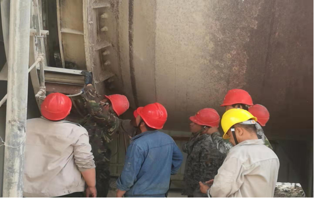 在更換液位計現場,“看來得想其他辦法了”。電儀裝置裝置長王波帶領電儀裝置班組人員經過商討,決定利用杠桿原理進行拆卸,即一人站在扶梯上固定螺栓,一人在一米遠的平臺上撬,終于擰動了生銹的螺栓,將液位計成功拆卸。而此時,他們又接到了一項新的檢修任務:檢修并緊固窯尾電動機。