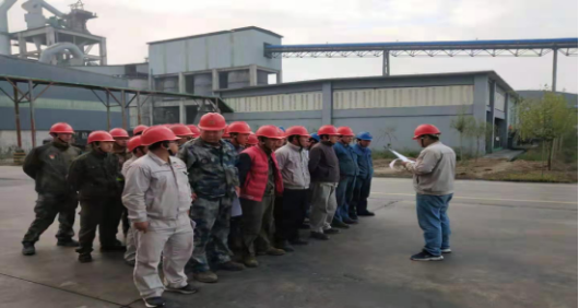 10月16日上午7時40分,成品裝置集結熟料煅燒工序、維修班人員針對回轉窯耐火磚挖補進行檢修前的動員大會。