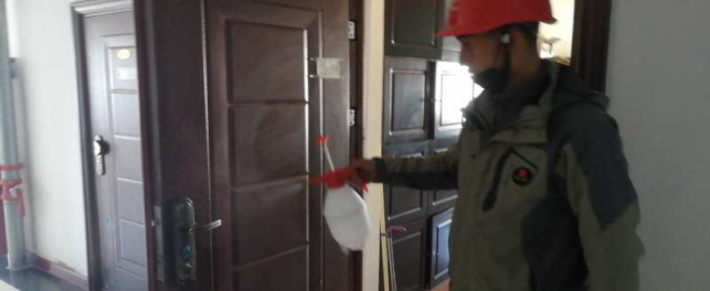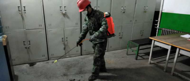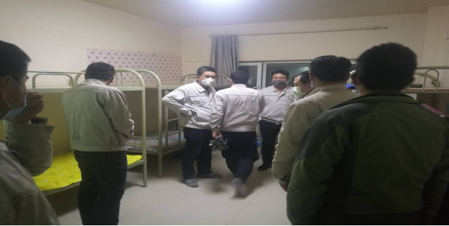 在宿舍,檢查留宿人員、進行衛生消毒等“疫情”防控工作。