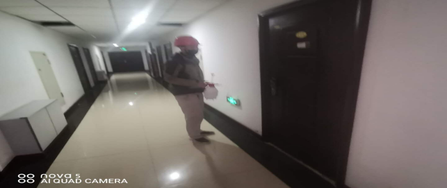 在宿舍進行衛生消毒。