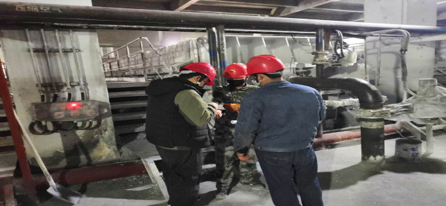 在公司北大門,他們對進出廠區(qū)職工及車輛登記,嚴格“疫情”防控工作。