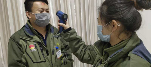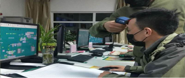 在園區(qū)南門,他們除了認真、細致,剩下的就是堅強的毅力和擔當敬業(yè)精神。當日截止下午17時整,他們檢測、消毒、登記車輛56輛,人員57人,車輛正常,人員體溫均在正常范圍。