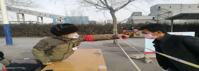在園區南門,面對寒風,他們從容不迫,是責任,更是忠誠的奉獻。當日截止下午17時整,他們檢測、消毒、登記車輛53輛,人員53人,車輛正常,人員體溫均在正常范圍。