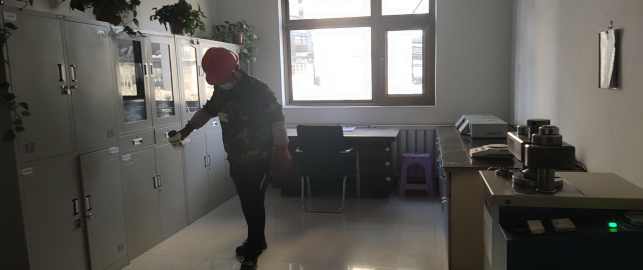對廠區衛生間消毒。