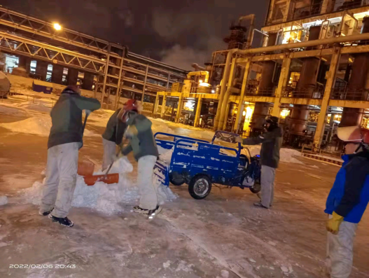 正月初五,固原迎來(lái)了2022年的第一場(chǎng)雪。堅(jiān)守夜班的化工橫一班接班后,調(diào)度就對(duì)橫一班員工強(qiáng)調(diào):“今天白天下了一天雪,晚上氣溫肯定會(huì)下降,現(xiàn)場(chǎng)巡檢時(shí)一定要注意防滑,上下樓梯抓好扶手,穩(wěn)走慢行。防凍防凝是巡檢重點(diǎn)內(nèi)容,大家要加大巡檢力度和頻次,尤其是要保證保溫伴管、排污閥、疏水閥等關(guān)鍵部位正常,操作人員要認(rèn)真監(jiān)控,及時(shí)觀察控制參數(shù)的變化情況,精準(zhǔn)調(diào)控,確保安全生產(chǎn)運(yùn)行”。一場(chǎng)大雪后,固原市銀裝素裹,人們?cè)诒M情地享受瑞雪樂趣。但在廠區(qū)內(nèi)“沙沙”聲、“咣咣”聲不絕于耳,當(dāng)班的班組長(zhǎng)及員工“以雪為令”,迅速行動(dòng),不畏嚴(yán)寒,揮舞著鐵鍬、掃帚、簸箕等一切能派上用處的除雪工具,你鏟我掃相互配合,全面徹底清理室外道路、巡檢通道、裝置現(xiàn)場(chǎng)等區(qū)域的積雪和凍冰,經(jīng)過數(shù)小時(shí)的奮戰(zhàn),現(xiàn)場(chǎng)干凈整潔,切實(shí)保證了裝置安穩(wěn)生產(chǎn)。