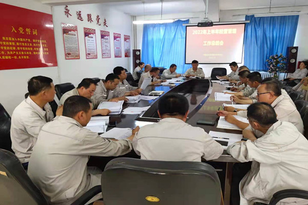 其次安環科科科長從事故隱患查處,開展返三違活動、安全環保、固廢渣場等工作開展情況及存在問題中分析了不足,對下半年各項重點工作開展情況做出規劃,及要求。之后綜合科科長從上半年目標任務完成情況、主要物料消耗情況、綜合成本利潤完成情況、質量目標完成情況、設備、工藝指標完成情況、企業文化建設、黨建精神文明、疫情防控工作及綜合治理逐一進行了匯報,并對開展工作中的不足及采取的措施進行了詳細分析。