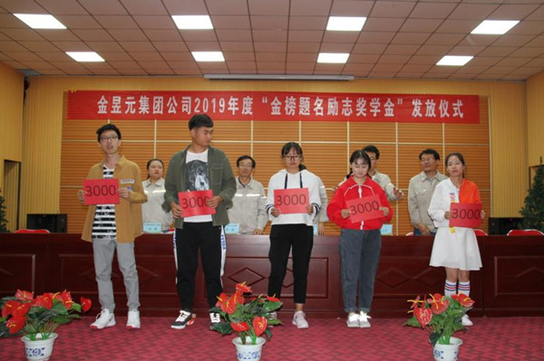 8月23日上午,集團公司在職工活動中心舉行2019年員工子女“金榜題名勵志獎學金”發放儀式。