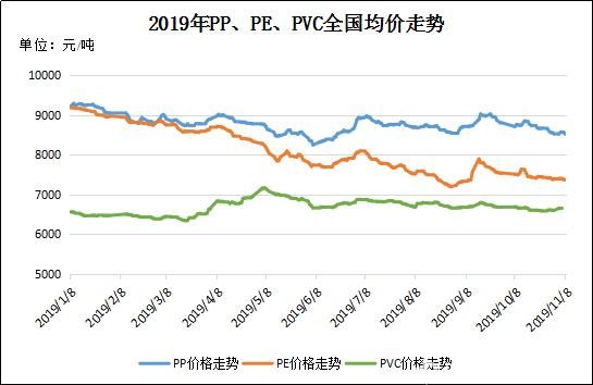 圖3 2019年P(guān)P、PE、PVC全國(guó)均價(jià)走勢(shì)
