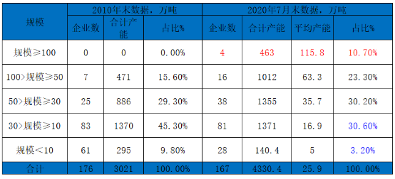 二、2020年燒堿產能變化情況